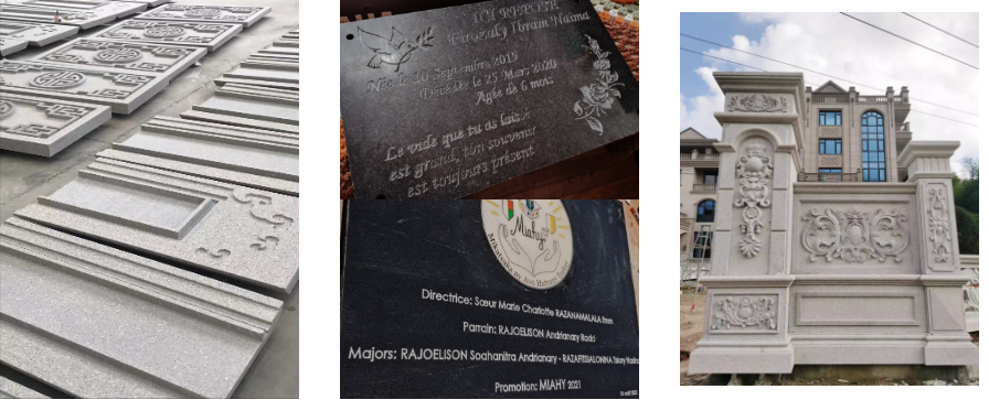 1). Архитектурное каменное украшение: Гравюра узоров, цветочных мотивов или культурных символов на мраморных/гранитных стеновых панелях, облицовке колонн и фасадах зданий коммерческого назначения, отелей или в рамках проектов по реставрации исторических объектов.